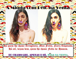 Mas, naquela noite, depois de ter feito o novo cabeçalho, a Mam'Zelle teve dificuldade em adormecer. Comichão. Que raio? Tinha uma certa comichão nas mãos que não a deixou dormir nem um tico. No dia seguinte, ao olhar para o novo header, sentiu que lhe faltava ali qualquer coisa. Nada de exageros, obviamente, mas um pormenorzito só. E assim foi. Lembrou-se que teria de levar, pelo menos, uma moustache ou outra. Vamos lá ver uma coisa, quer queiramos quer não, é a bela da moustache que define toda a essência deste blogue. Por isso mesmo, lá arranjou umas bigodaças pretas, a fazerem pandã com as letras.